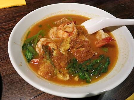 我的天啊,又辣又酸遠超過我能接受的程度.蝦子沒幾隻,蛋餅做的好薄讓我誤認為豆腐皮.大姐卻是愛的要命,直說只要咖哩汁就可撈飯!!