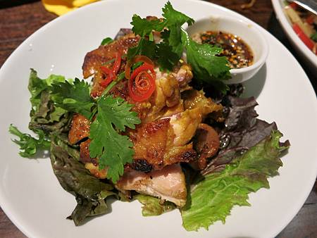 烤雞 gai yaang AU$12.50 (char grilled turmeric and lemongrass marinated chicken with smoked chilli and tamarind relish)