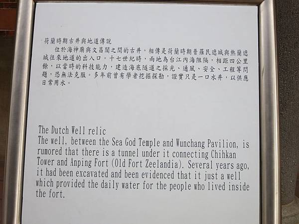 介於文昌閣和海神廟的半月型紅毛井是當時荷蘭人用來汲水飲用的水井.