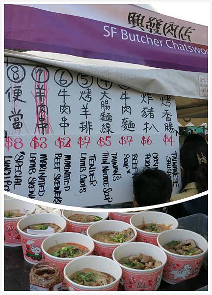 Cho禚家(中國城, Hurstville)很厲害包下三個攤位,那個筍乾太香太誘人了,但只能跟豬腳飯.通常對鹽酥雞$6沒什麼興趣今天卻買來一嚐(~~味道好但有些油),甜不辣$5.5回家發現怎麼忘了放蘿蔔??