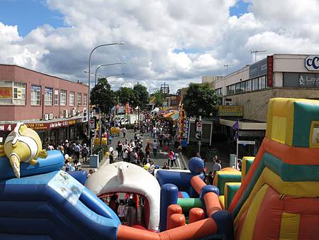 由市區Central Station(中央火車站)到卡市約1個小時.好多人搭火車前來,連出站都有點卡.站前馬路變成遊戲攤位遊樂場.左側John Street和 Freedom Plaza則變成攤位.