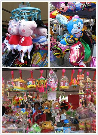 玩具攤位,當然少不了燈籠.小時候只有紙燈籠(危險兮兮),那有這麼多花樣.