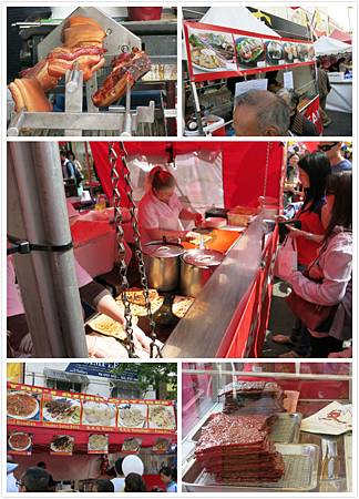 各國料理攤位.豬肉乾牛肉乾(右下),一片$3.5,3片$10.Turkish gozleme(中間)常在活動攤位中出現.