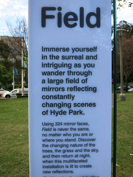 不論你是誰或是你站在哪裡,有324面鏡子(9 x 9 排列的鏡柱)的 Field 絕不相同.