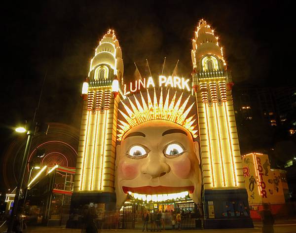 旁邊是小型遊樂園 Luna Park 月神公園.晚上金光閃閃蠻漂亮,可是在園內只能用monopod單腳架.宅媽手抖得很厲害沒辦法拍.