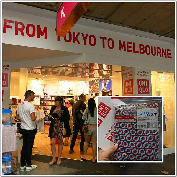 她和同學要做海報和face painting支持費德勒.我們先搭免費的35號環城電車到市中心找材料用具.剛好遇到日本國民品牌Uniqlo在墨爾本的pop-up store(171 Swanston Street)開幕,拿到免費背心. p.s.隔天再經過大排長龍就不湊熱鬧了.