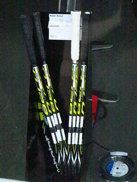 Wilson stringing room 外擠著一群人,原來在看納達爾的球拍.