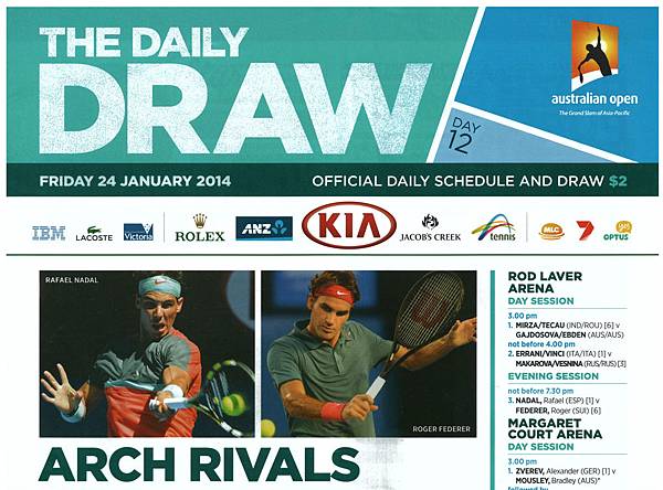 男子單打進度看版:2013冠軍Djokovic.~~2014冠軍Wawrinka.