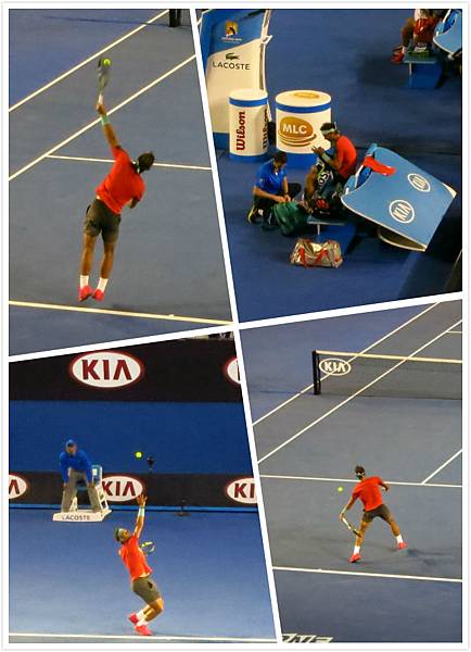 囡囡醬本來就期盼能看到費德勒,我跟她說這種事可遇不可求.做夢都沒想到我們會看到兩大天王的晉級爭霸戰!!! p.s.我後來才知道這是納達爾和費德勒的第三十三次對戰,而費德勒贏過10場...
