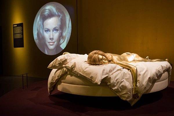 "Goldfinger","金手指"中Jill Masterson因愛上龐德被 Goldfinger在全身涂上金漆窒息而亡~~圓床一直旋轉.