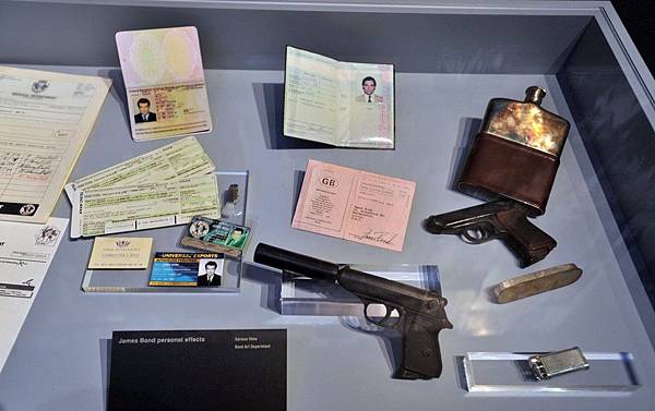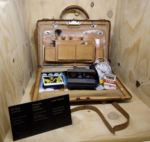 ** Q'lab: 用資料箱展示Q為龐德研發的各式各樣新奇超越時代的道具和武器.