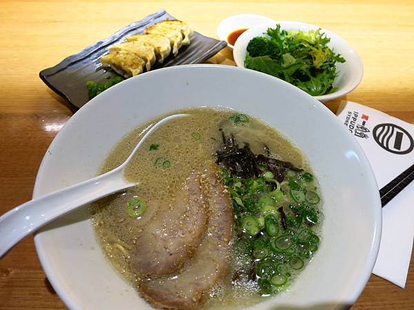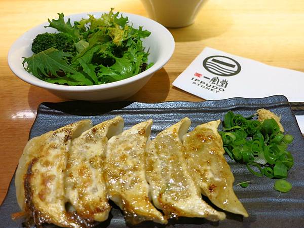點了最經典的 SHIROMARU MOTOAJI 白丸元味 AU$15 (約NT$413), 服務員問要不要加蛋? 一粒蛋要AU$3! No. Thanks. 服務員再問要不要 Lunch set? 那好吧,加AU$4 選了GYOZA SET 煎餃(5個)+mini沙拉.可選麵的軟硬度,我選了中的.