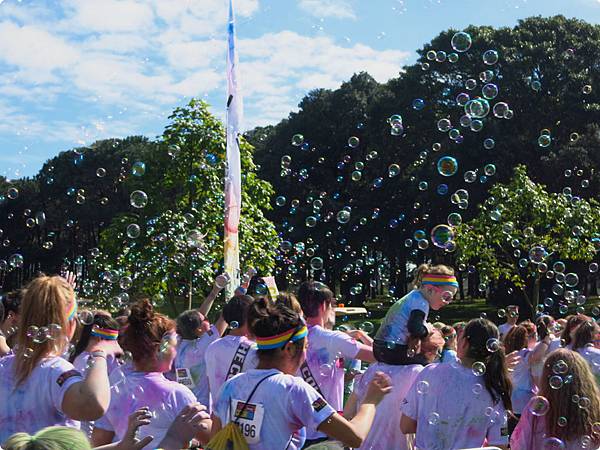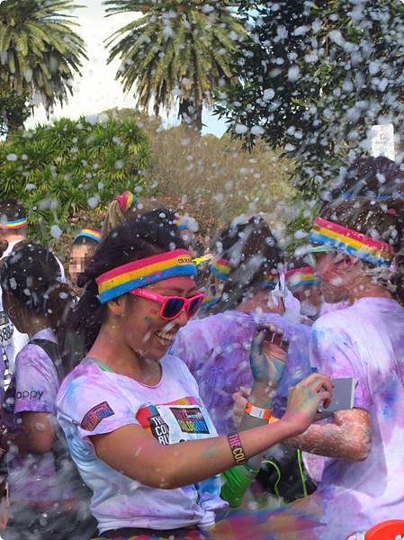 在終點舞台旁等待拋彩粉的瞬間.不過站錯地方,拍得都不理想.