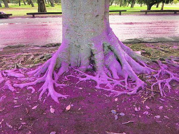 雖然主辦單位有灑水在馬路上,路旁的樹只有等下雨了.希望那些彩粉如主辦單位所說是安全的.