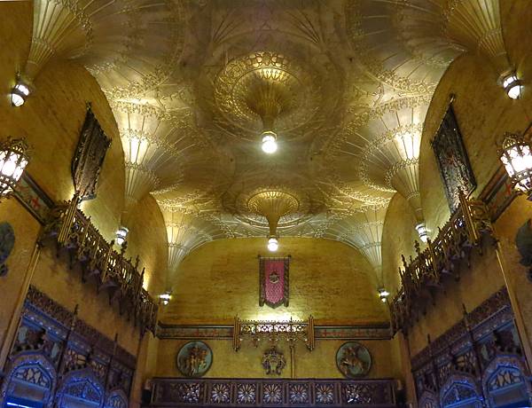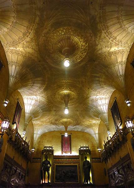 迎面而來是哥德式的門廳,有著中古時期的裝飾和令宅媽驚艷的天花板.~~仿倫敦西敏寺亨利七世禮拜堂的扇形圓拱屋頂.