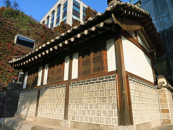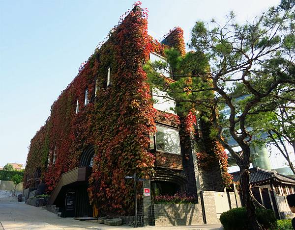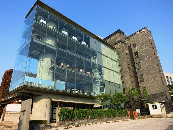 "空間社屋"(공간사옥)是韓國當代建築先驅者—金壽根(김수근,Kim Swoo-Geun 1931-1986)的代表作,常被稱為韓國最佳現代建築物.被藤蔓覆蓋的黑磚建築主館(1972建成)好像與世隔絕(內部有錯綜複雜的空間),而右側玻璃建築(1997擴建)卻完全開放,加上傳統韓屋(擴建)在其中.以多樣性建築體來做多元的藝術表現.