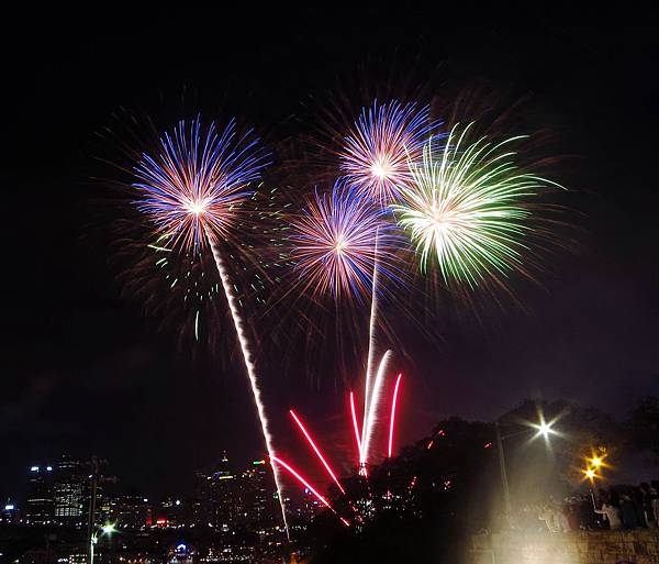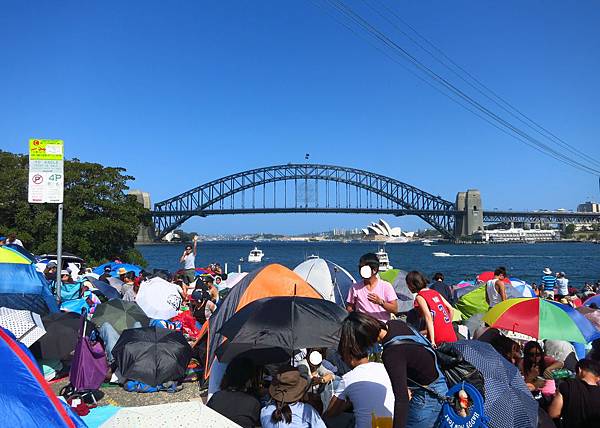 2014為了拍煙火照,準備吃的喝的下午兩點就到Blues Point Reserve等待.這個免費地點蠻熱門的有些人會紮營過夜搶最佳地點.感謝朋友中午下班就前來卡位.可是後來發現雖然正對雪梨大橋但會拍到電線,而且右側有個煙火放射點,鏡頭都不知道要對哪裡?