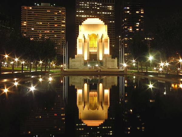 在網上看見別人po的照片才知道市區 ANZAC Memorial Hyde Park 戰爭紀念館前有水池能拍倒影.~~一直以為裡面沒東西可看,其實有個小展覽室喔.
