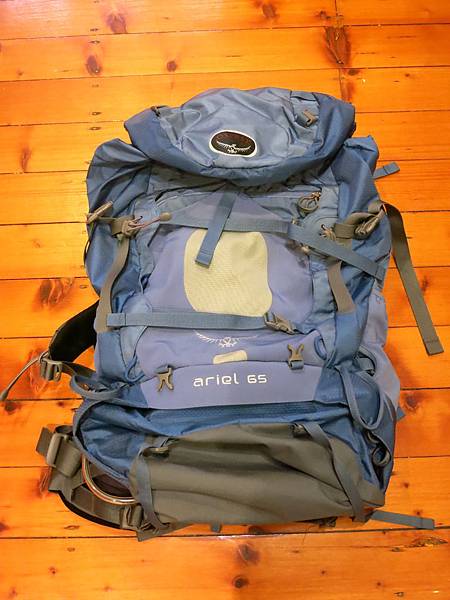 登山背包: OSPREY - Ariel 65L女款 ~~曾幻想將來當背包客用這背包趴趴走.可是自己體重已經超重,膝蓋也不好,又喜歡帶很多東西,還是拉行李箱吧.