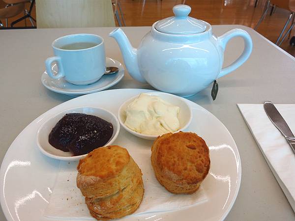 司康新鮮中規中矩可惜不大.鮮奶油(很棒)果醬(對我來說有些甜)份量十足,再多個司康都夠.宅媽笨手抹的很醜也抹到自己手指.p.s.有人先抹奶油再抹果醬,也有人先抹果醬再抹奶油.以後兩種都試試.