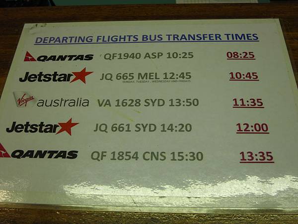 抵達1984啟用的Ayers Rock Airport小機場.如果沒租車自駕可搭Ayers Rock Resort免費接駁車到Resort(6公里距離).