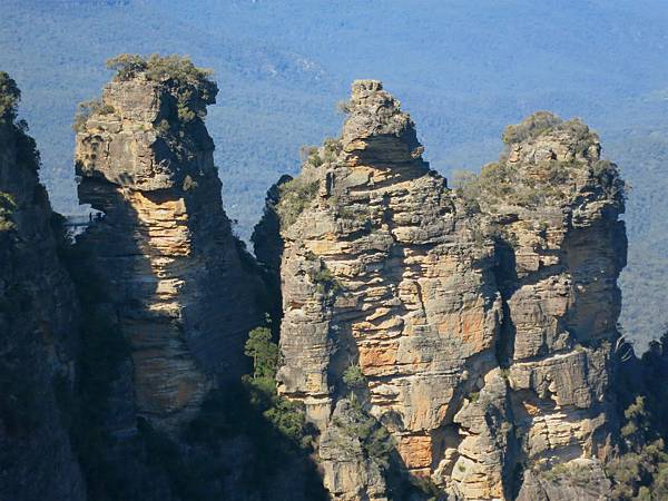鏡頭拉近Three Sisters三姊妹峰.左邊有Honeymoon Bridge蜜月橋.一直好奇那裏的模樣,今天親自走一遭.