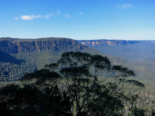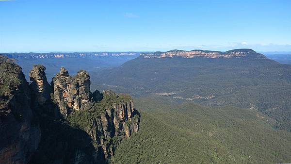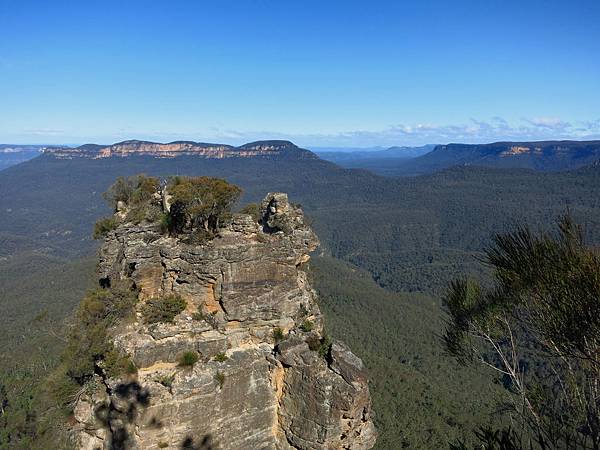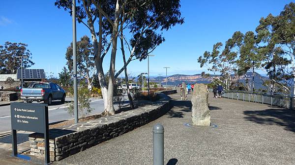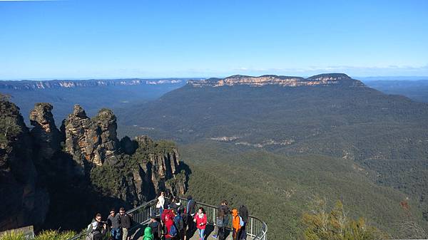 下面是Queen Elizabeth Lookout.英國女王伊麗莎白二世1954曾在這欣賞Jamison Valley風景.遠方是Mt Solitary,左邊是三姊妹峰.