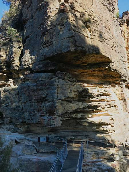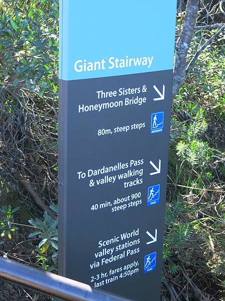 這是1932開放約有900階的Giant Stairway(Hard級步道)下到山谷,宅媽有自知之明走到蜜月橋就好了. p.s.走階梯下山谷後可走到熱門觀光景點Scenic World(約3小時),然後搭Railway(成人單程AU$16)上山谷,有公車686回Katoomba.