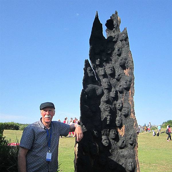 Kim Perrier, ashes to ashes. ~~樹幹布滿男女老幼的石炭臉,很有意思.剛好藝術家在場.