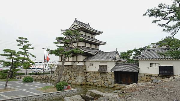 "玉藻公園為枯山水式庭園的代表庭園,利用日本三大水城之一的高松城遺蹟所成立的公園。有400多年歷史的高松城有3層護城河,直接取自瀨戶內海的海水,河道比其他城池還寬,面積更大,兼著守護城堡和水運的功能,因此被稱為日本三大水城。" 網路資訊