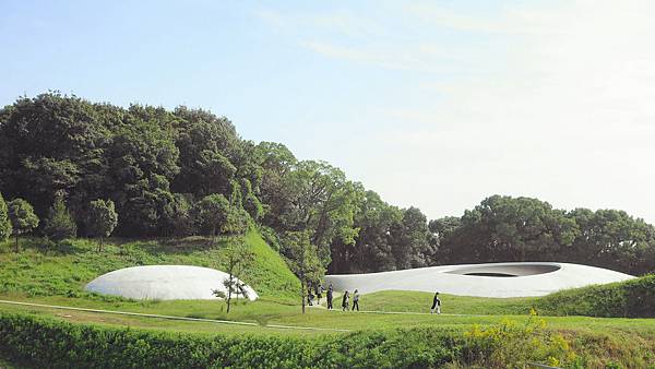 "豊島美術館是用『堆土』手法建造而成!先在地上用土堆出圓弧形的模子,在上面打鋼筋、造板模並灌漿,接著等待六星期,使其乾燥,再用小挖土機將裡面的填充物挖走,便灌出了像蛋殻薄膜般的外型" 網路