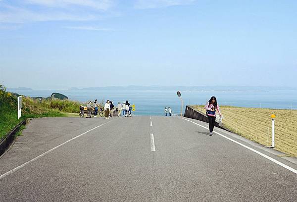 在[豐島美術館前]下公車,轉身迎面而來是海天合一美景.往右到美術館.