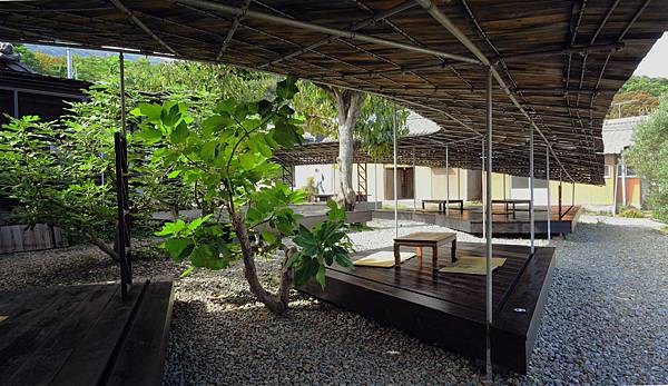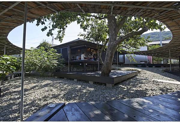"由安部良設計的開放式餐廳,大屋頂環抱下桌子位於半戶外空間。島上女性居民與丸之內飯店大廚合作開發原創菜色。使用大量當地產魚類、蔬菜烹調的菜色備受好評。此外,陽台上隨時舉辦音樂演奏、舞蹈或研習會等活動。以藝術與美食搭起人與人間的橋樑,成為島上的交流平台。" 藝術祭官網
