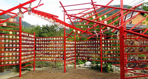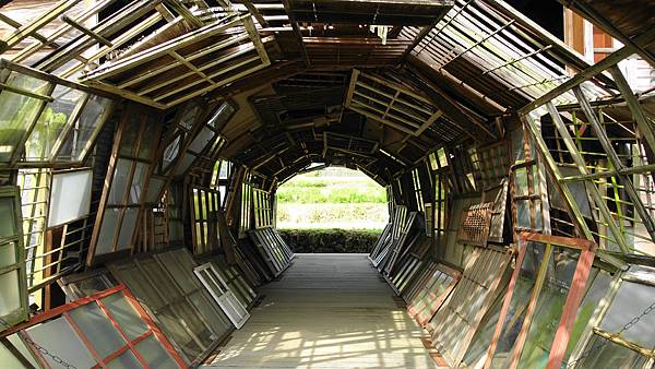 "以不使用之木製門窗框在聚落舊集會中心設置隧道狀立體作品,此一作品收集了600片門窗框,並與當地居民共同作業。隧道延伸貫穿建築物,正面有水田,後方則是海洋。 " 藝術祭官網