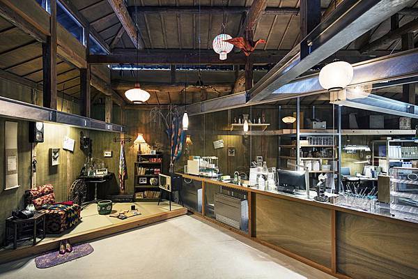 古民家改建的展場有兩扇門,工作人員要我們由右邊門進入.裡面不准拍照,寫文只好上網找.進去是科學實驗室模樣,桌上有許多不知名書籍(爬文說是科學,神話,愛情,養蠶方面?).還有個箱子裡有蠶寶寶.