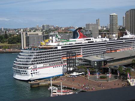 哇... 雪梨 Overseas Passenger Terminal 停了一艘豪華遊輪 Carnival Spirit 這個才真正吸引到宅媽, 因為從來沒搭過. 我們家婆婆曾說想搭遊輪,宅媽會暈船況且價位不斐, 所以只能說抱歉了.